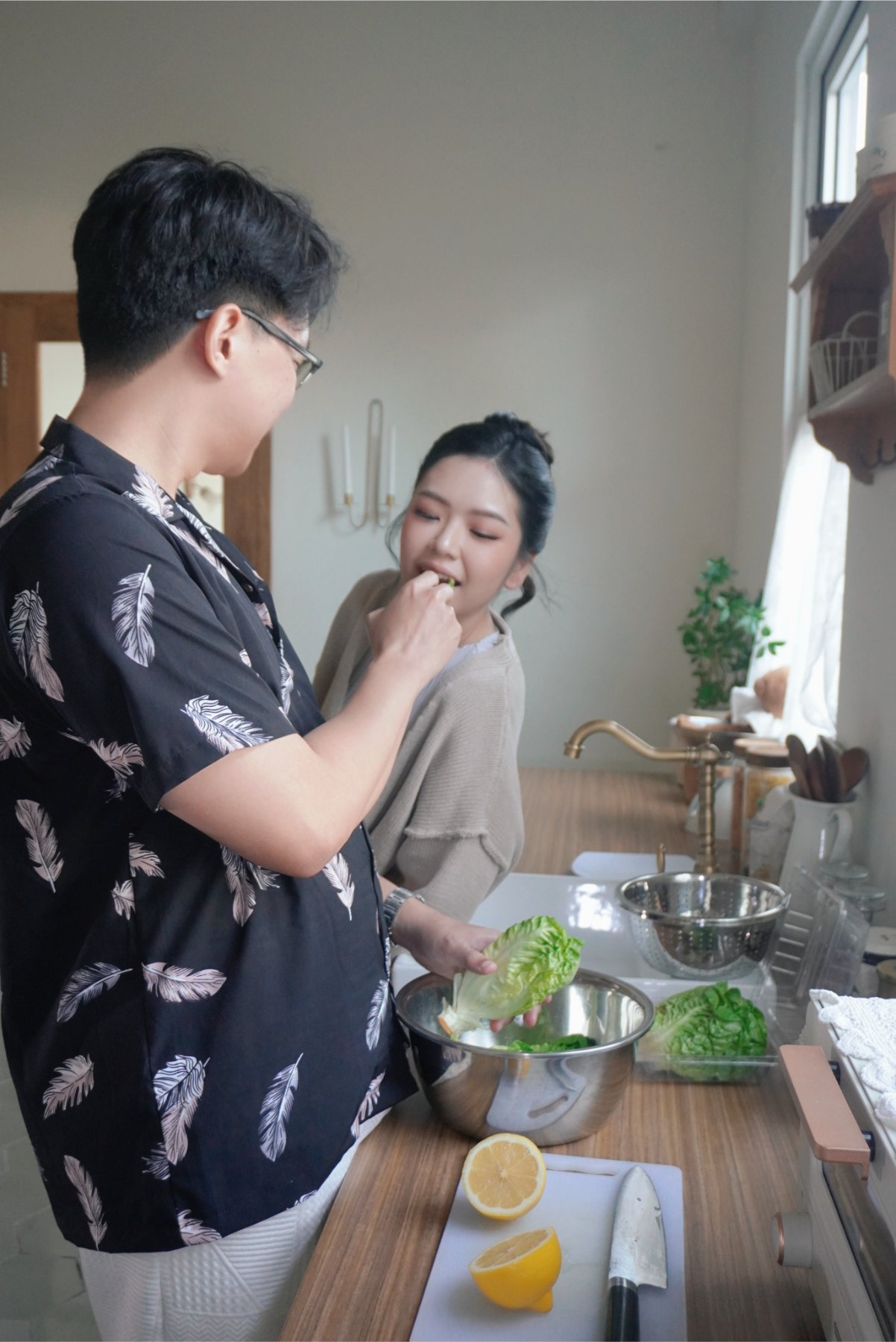 “Dari kencan sederhana di sebuah restoran sushi, dibawah temaram lampu dan hembusan angin rintik gerimis, kami menyadari bahwa kami memiliki banyak kesamaan dan ingin saling melengkapi, mengasihi, serta menjaga satu sama lain.”