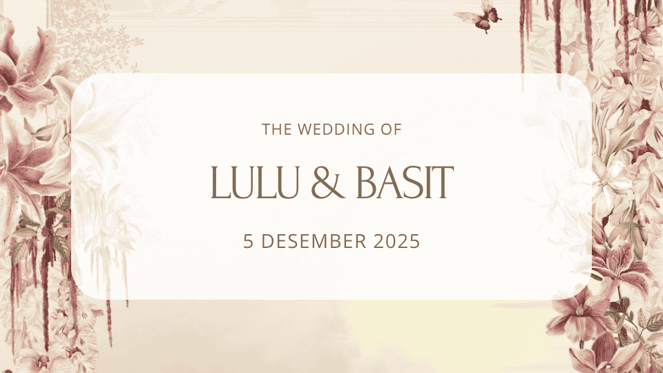 UNDANGAN PERNIKAHAN Lulu & Basit 5 Desember 2025 The Wedding of Lulu & Basit Kepada Yth. Bapak/ Ibu/ Saudara/ i OPEN INVITATION “Dan di antara tanda-tanda (kebesaran)-Nya ialah Dia menciptakan pasangan-pasangan untukmu dari jenismu sendiri, agar kamu cenderung dan merasa tenteram kepadanya, dan Dia menjadikan di antaramu rasa kasih dan sayang. Sungguh, pada yang demikian […]