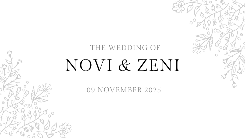 UNDANGAN PERNIKAHAN Novi & Zeni 09 November 2025 THE WEDDING OF Novi & Zeni Kepada Yth. Bapak/Ibu/Saudara/i OPEN INVITATION “Dan di antara tanda-tanda (kebesaran)-Nya ialah Dia menciptakan pasangan-pasangan untukmu dari jenismu sendiri, agar kamu cenderung dan merasa tenteram kepadanya, dan Dia menjadikan di antaramu rasa kasih dan sayang. Sungguh, pada yang demikian itu benar-benar terdapat […]