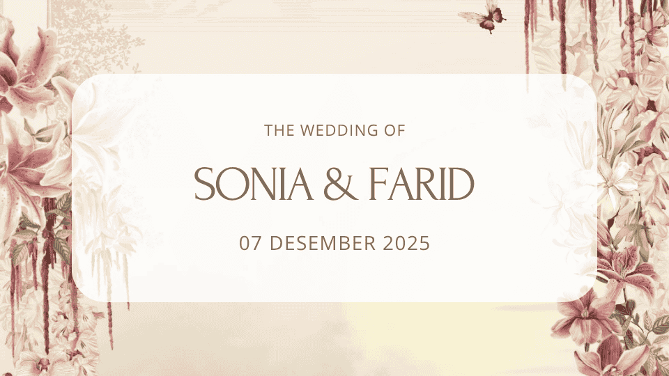 UNDANGAN PERNIKAHAN Sonia & Farid 07 Desember 2025 The Wedding of Sonia & Farid Kepada Yth. Bapak/ Ibu/ Saudara/ i OPEN INVITATION “Dan di antara tanda-tanda (kebesaran)-Nya ialah Dia menciptakan pasangan-pasangan untukmu dari jenismu sendiri, agar kamu cenderung dan merasa tenteram kepadanya, dan Dia menjadikan di antaramu rasa kasih dan sayang. Sungguh, pada yang demikian […]