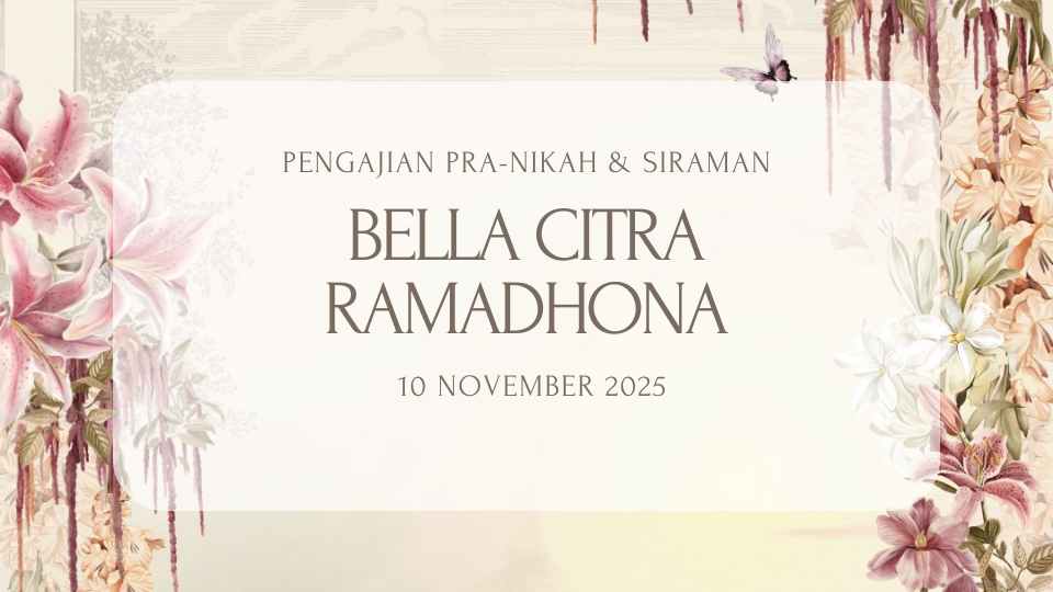 Pengajian PRA-NIKAH & Siraman Dhona 10 November 2025 Pengajian Pra-Nikah & Siraman Bella Citra Ramadhona Kepada Yth. Bapak/ Ibu/ Saudara/ i OPEN INVITATION “Dan di antara tanda-tanda (kebesaran)-Nya ialah Dia menciptakan pasangan-pasangan untukmu dari jenismu sendiri, agar kamu cenderung dan merasa tenteram kepadanya, dan Dia menjadikan di antaramu rasa kasih dan sayang. Sungguh, pada yang […]